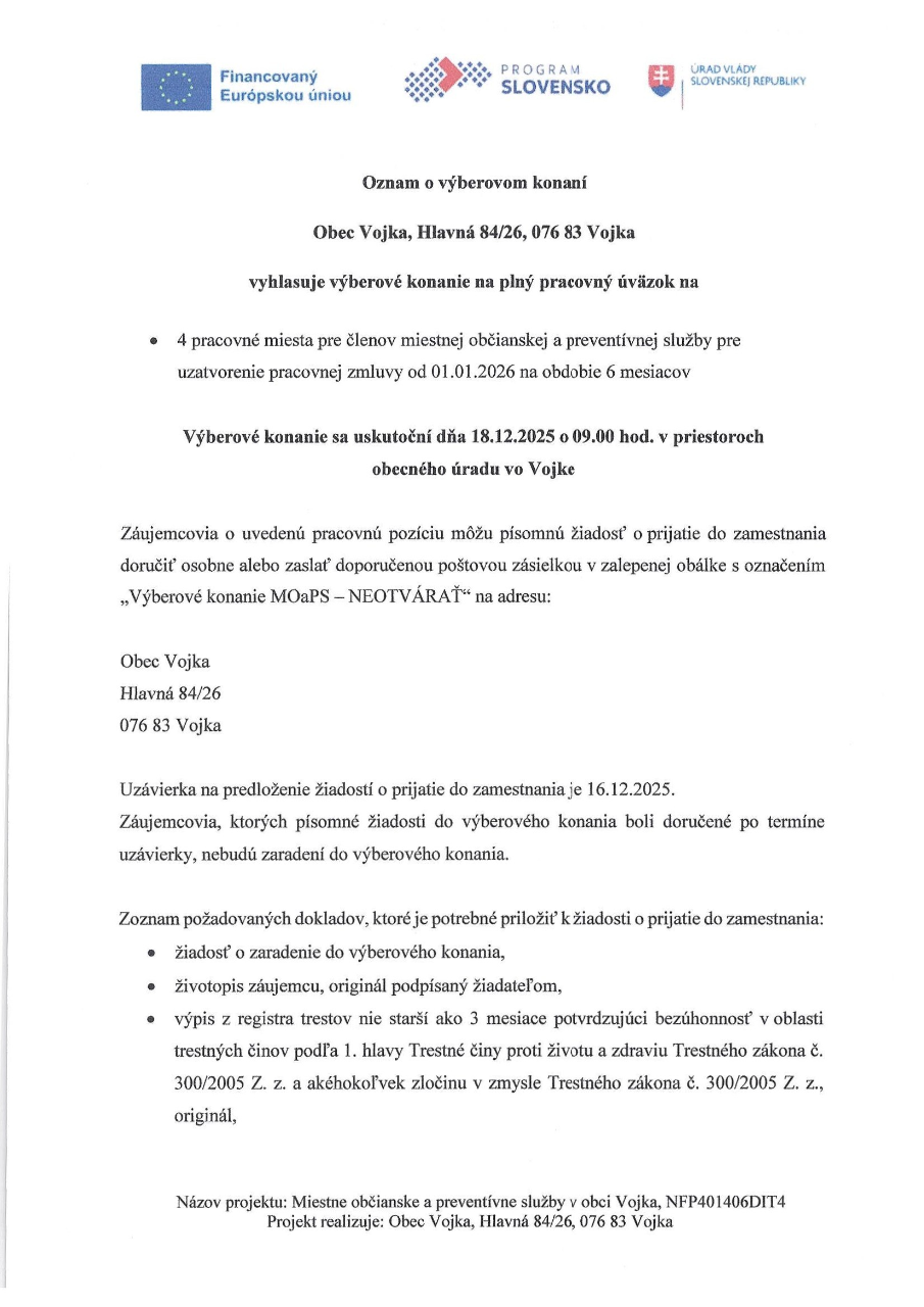 "Rekonštrukcia a prístavba MŠ v obci Vojka