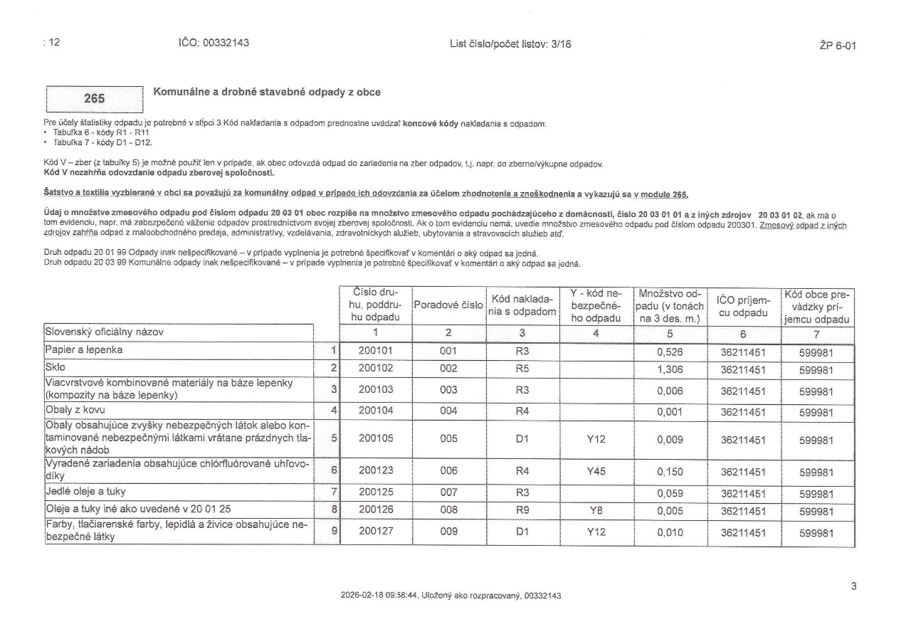 - Zníženie množstva zmesového komunálneho odpadu ukladaného na skládku.